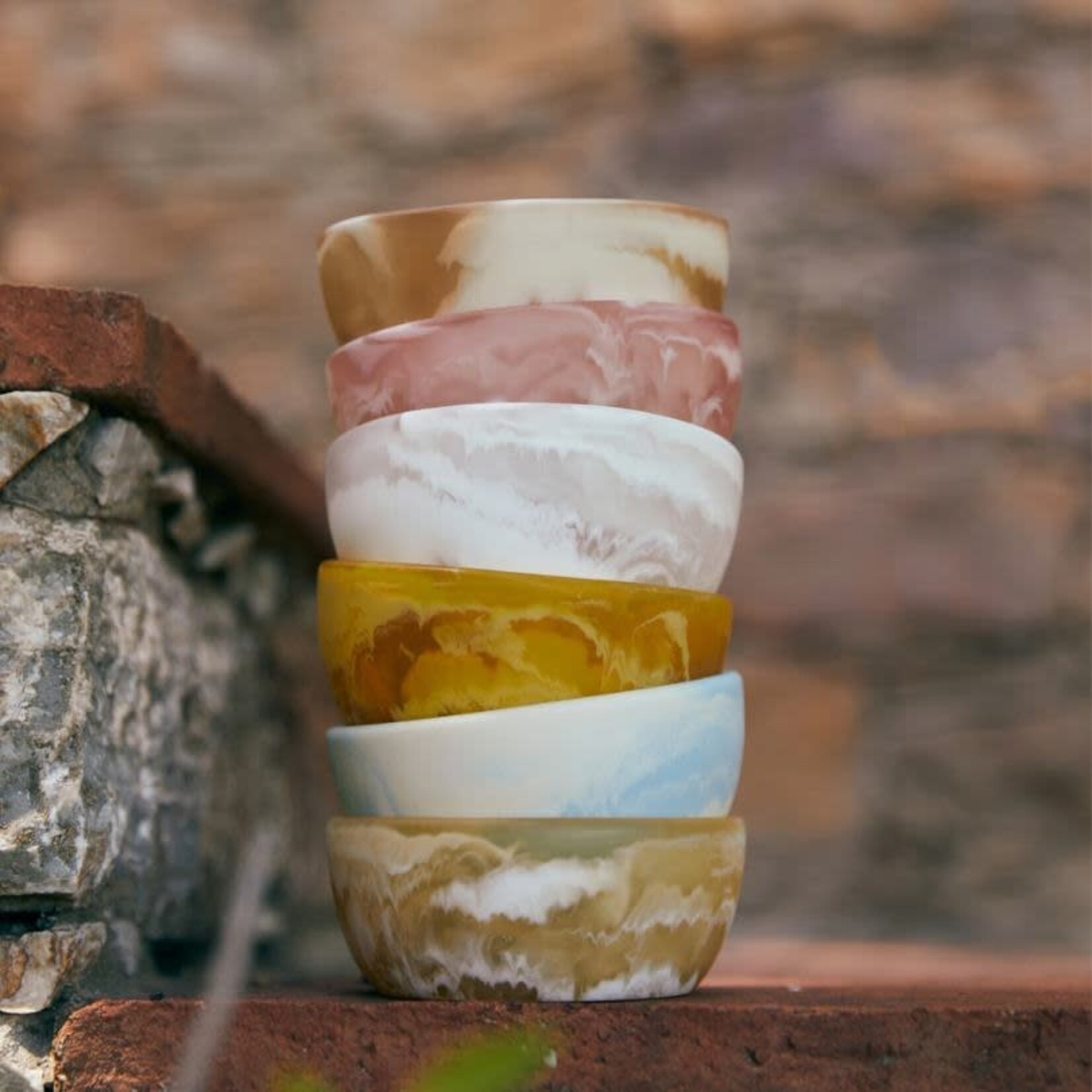 Nieuwe patio-kommen van HKliving. Het is gemaakt van hoogwaardig kunststof waardoor het licht van gewicht is en handig in gebruik. Het servies heeft een prachtig gemarmerd patroon wat er voor zorgt dat er elke kom een andere uitstraling heeft. We hebben ze in verschillende kleuren. Je kunt hem als tapas schaaltje gebruiken maar ook leuk voor je sieraden.